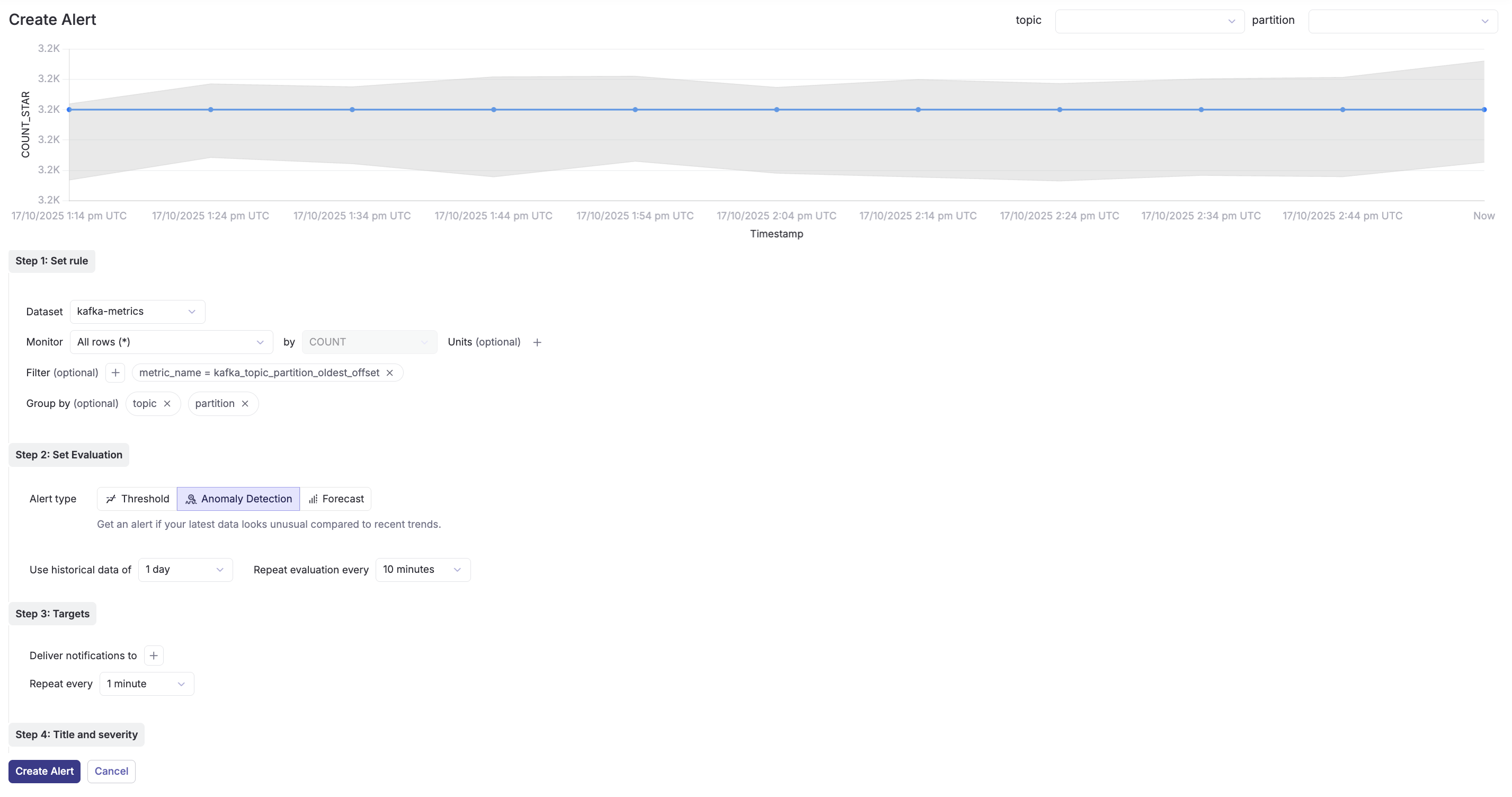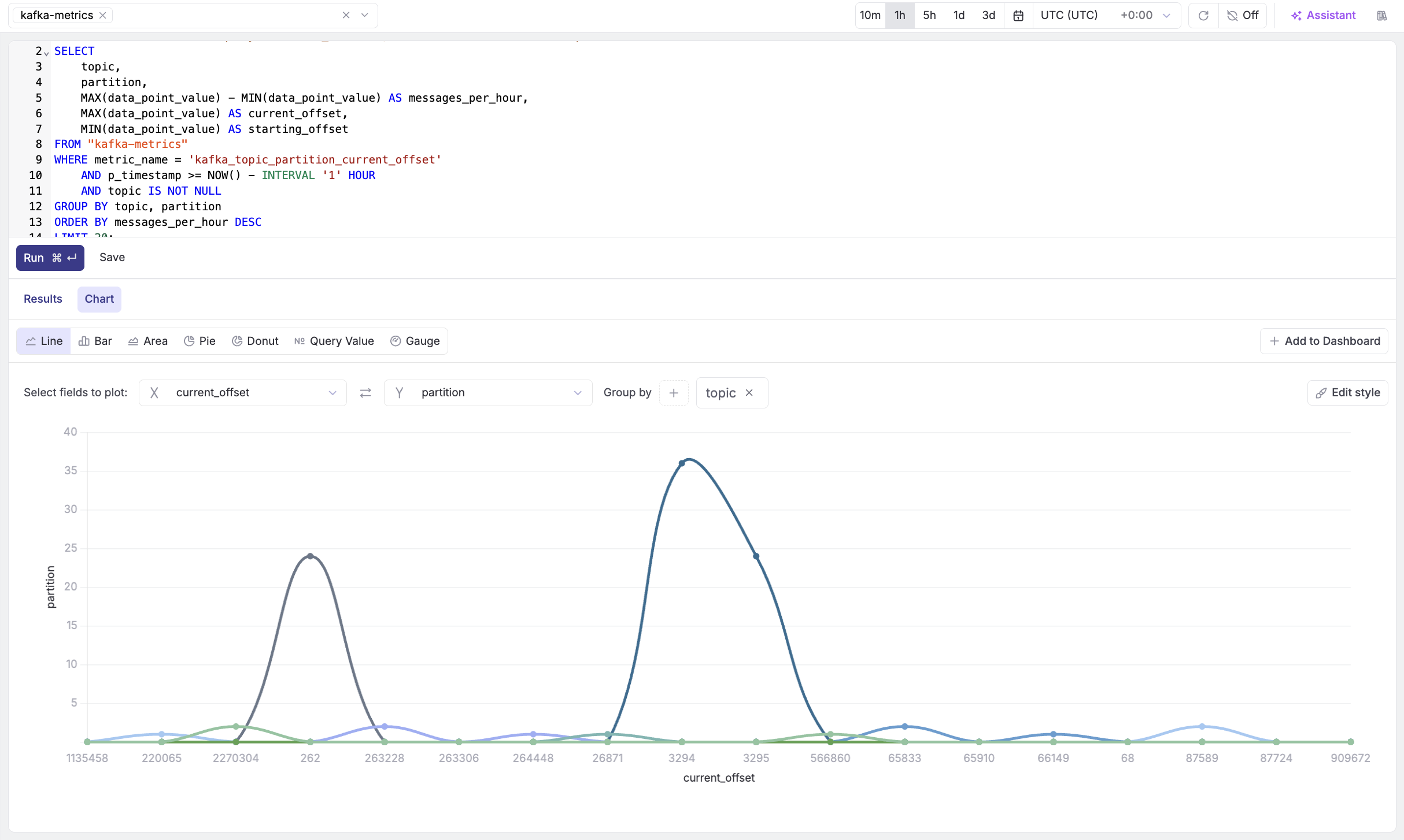 Use case: Proactively detect when partition offsets are growing at an unusual rate, allowing you to scale resources before issues occur.
