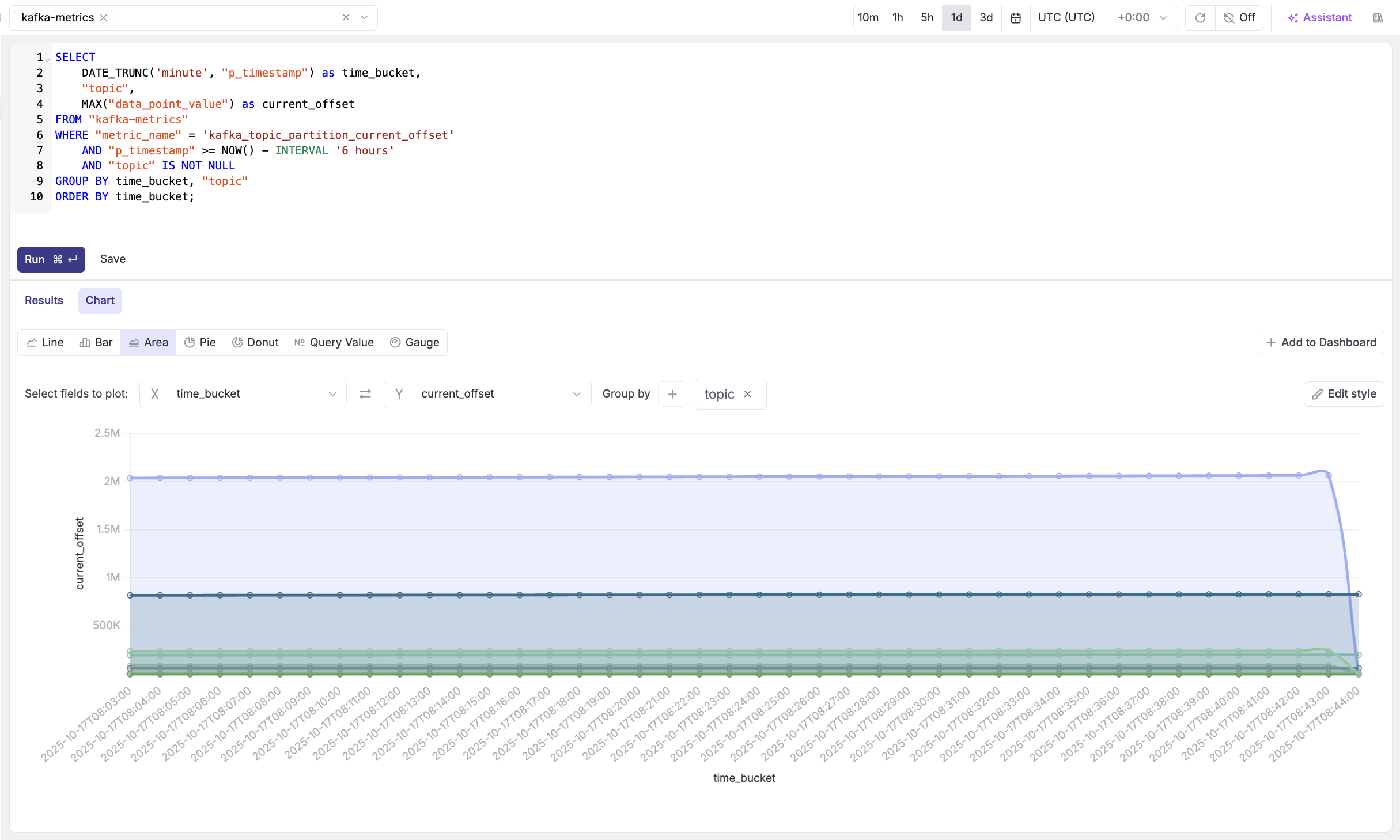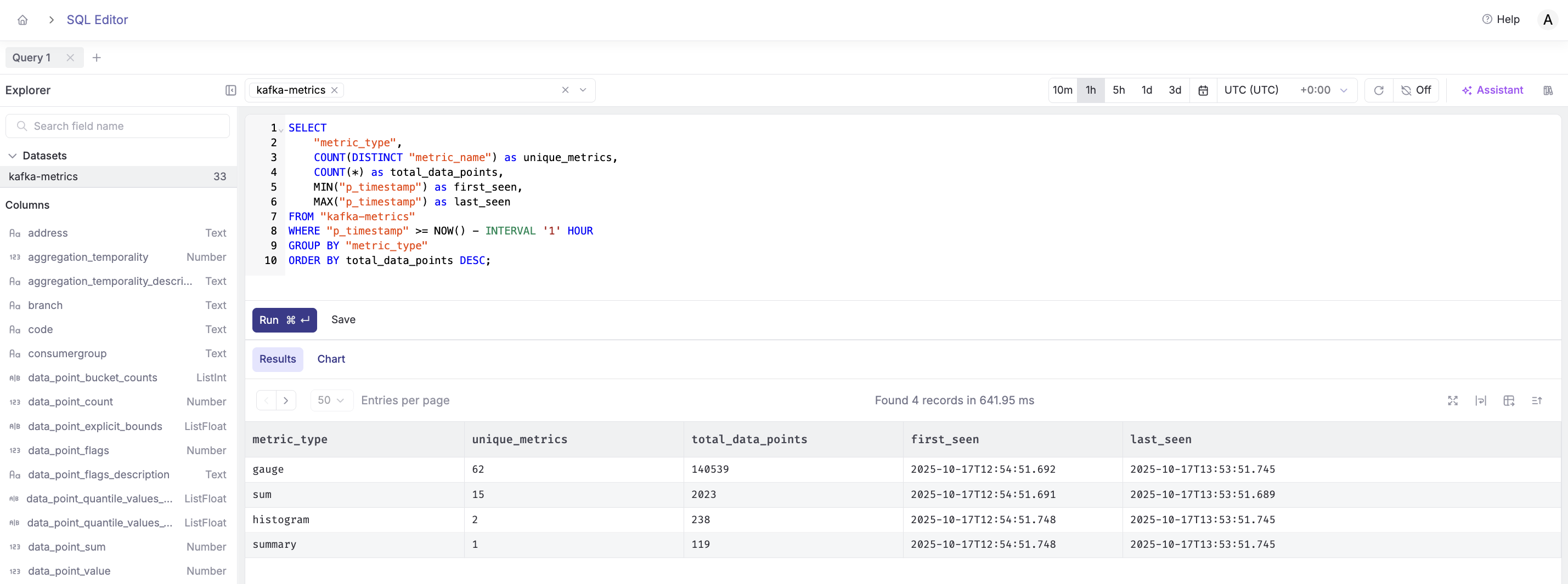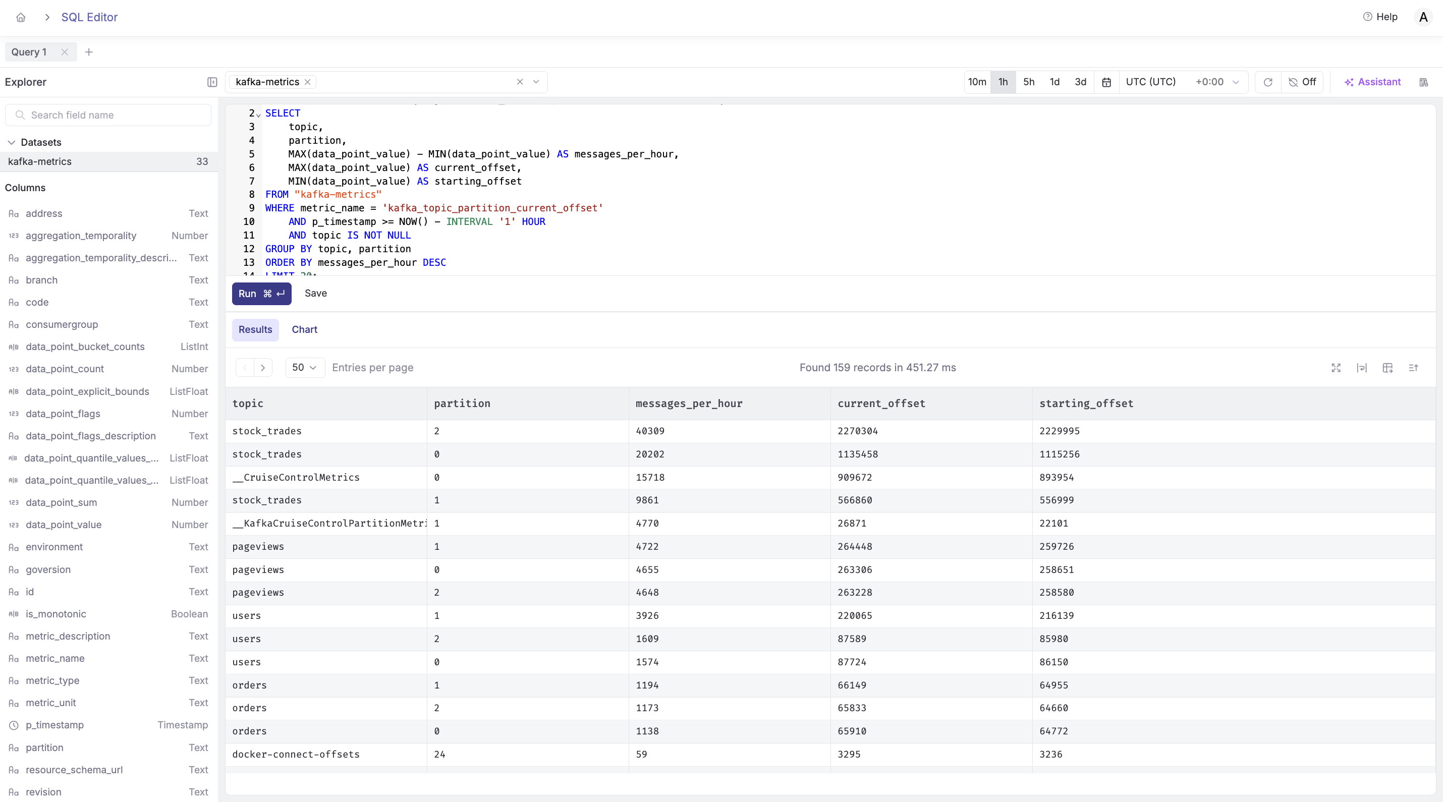 The SQL editor gives you full control over your Kafka metrics. Let's explore some powerful queries.