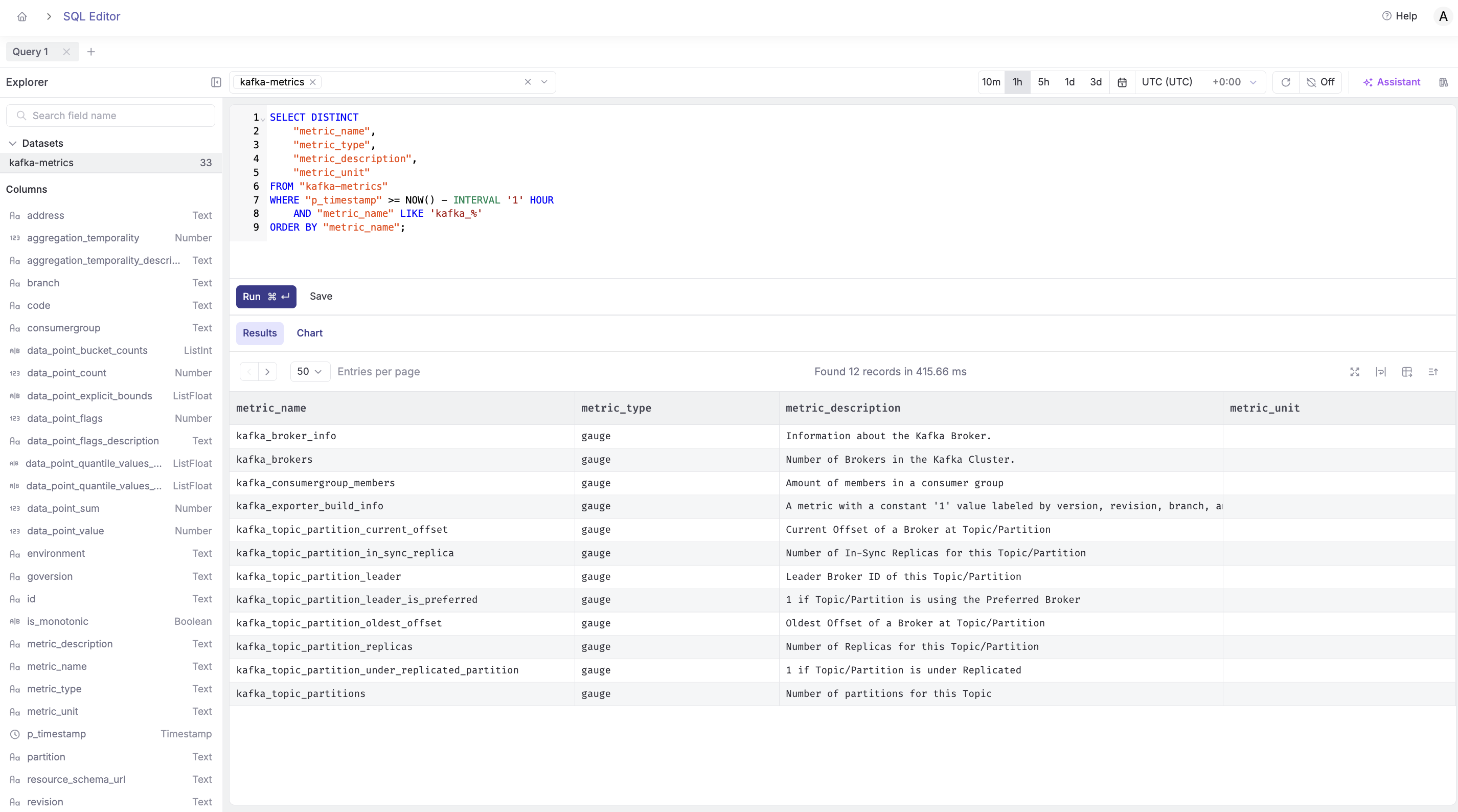 Now let's write SQL queries that leverage the full power of the Kafka metrics schema.