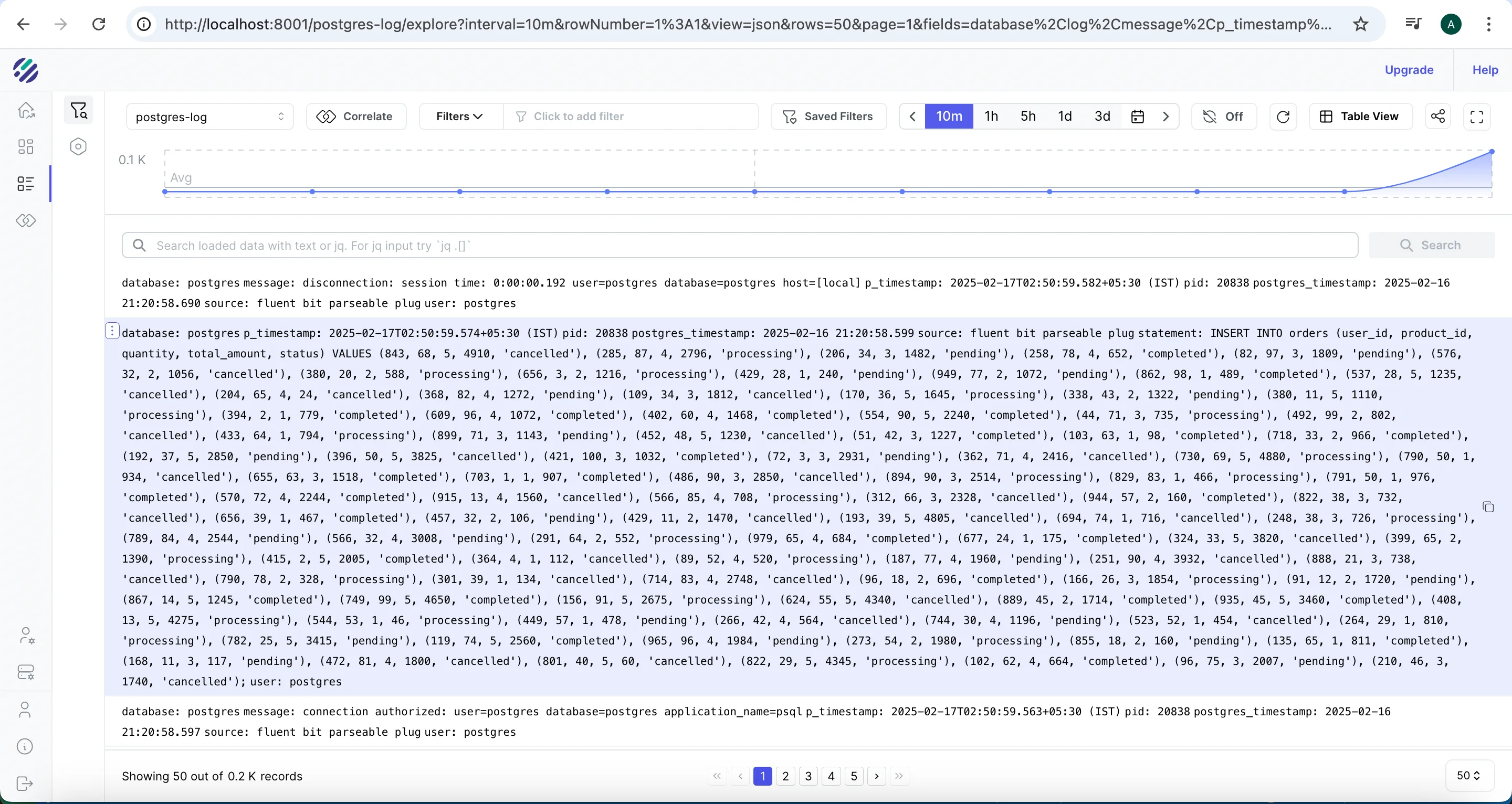 At this point we have our PostgreSQL logs as well as our metrics within Parseable. Now lets generate some queries in PostgreSQL and see how are logs are getting parsed within Parseable.