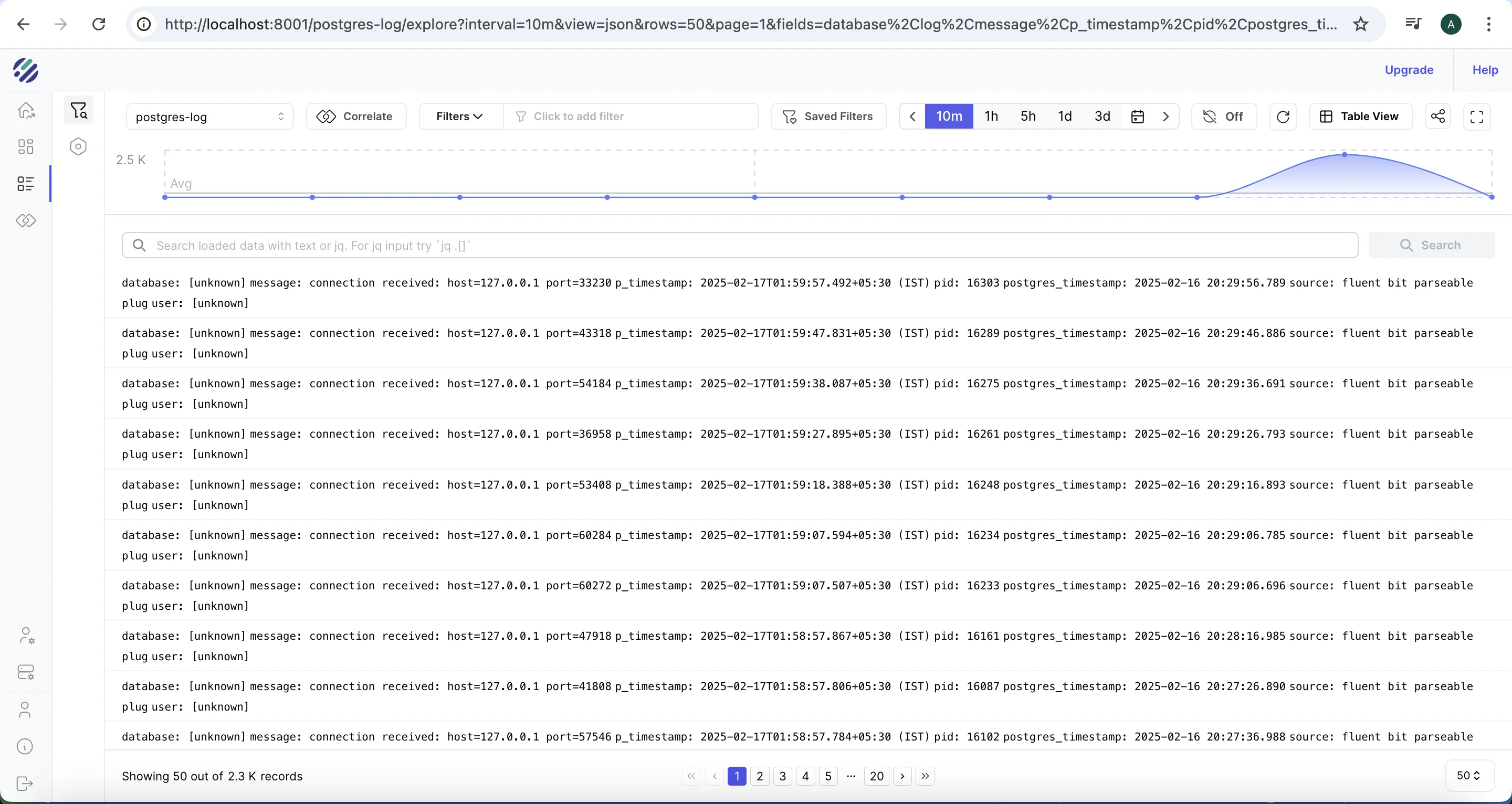 At this point we have logs in Parseable. Now let’s configure PostgreSQL metrics in Parseable.