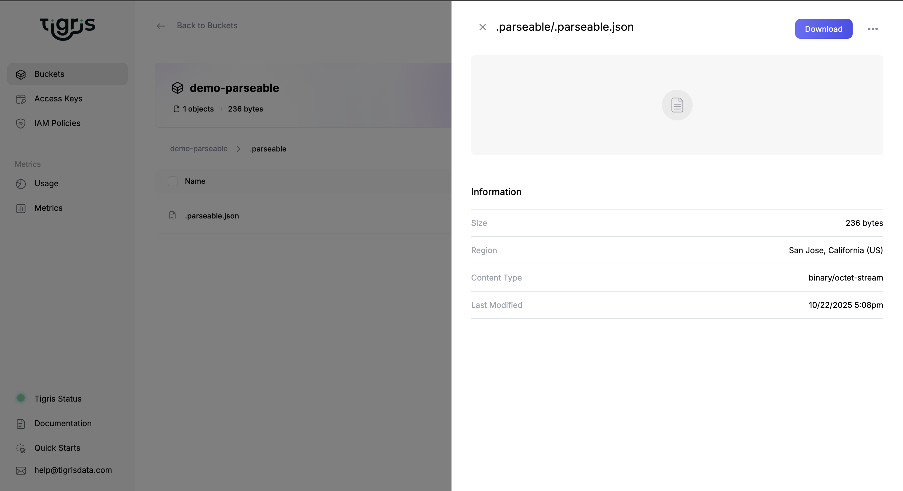 That’s it, you’ve got Parseable writing telemetry to a multi-region, S3-compatible Tigris bucket.
